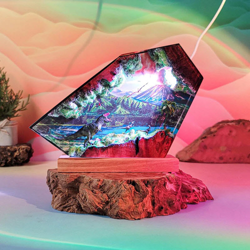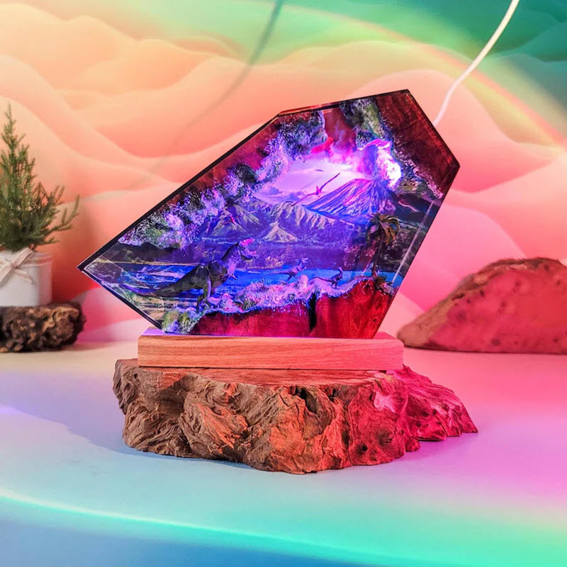 Đèn Bàn Epoxy EPX077 Thủ Công Cao Cấp Thế Giới Khủng Long