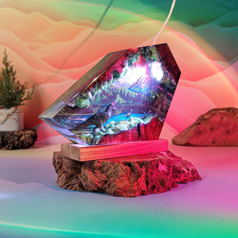 Hàng triệu năm trước, Trái Đất từng là một thế giới hoàn toàn khác. Núi lửa phun trào, sông suối chảy qua những vùng đất hoang sơ, khủng long thống trị cả bầu trời lẫn mặt đất. Đèn epoxy cao cấp EPX077 tái hiện lại khoảnh khắc đó trong một khối ánh sáng nghệ thuật, nơi thế giới tiền sử được thu nhỏ và đặt trọn trong không gian sống hiện đại.