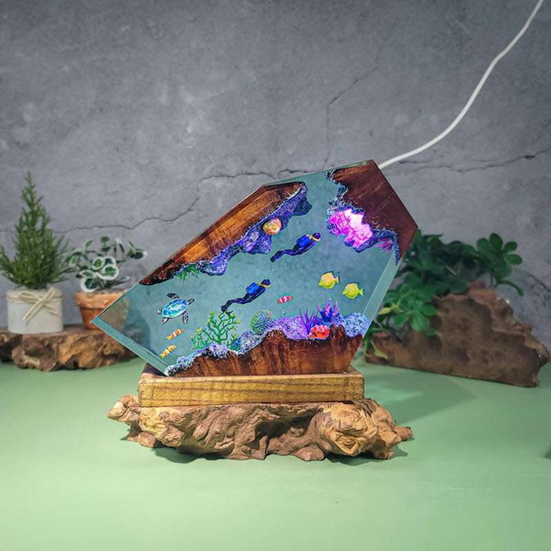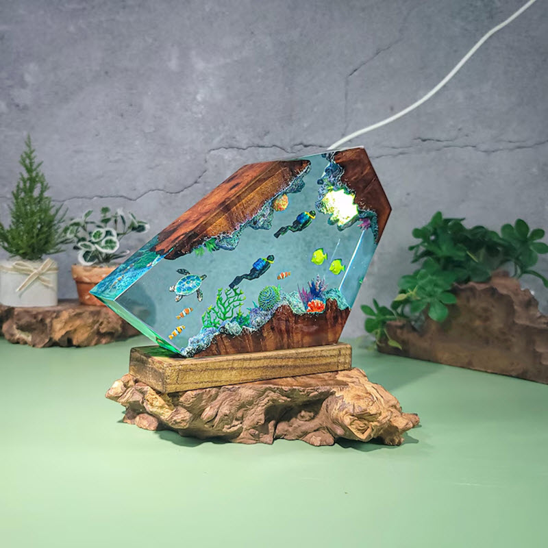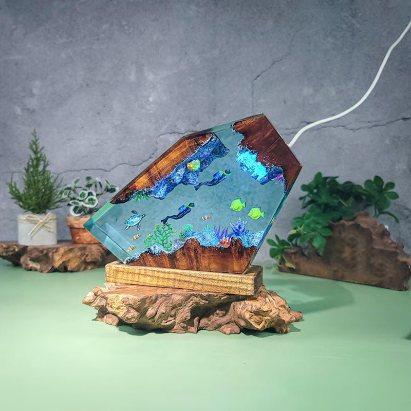 Đèn Bàn Epoxy EPX079 Thủ Công Cao Cấp Khám Phá Đại Dương Xanh