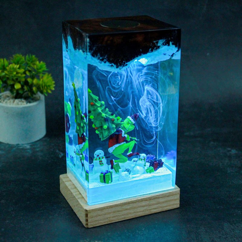 Lấy cảm hứng từ The Grinch – kẻ cắp Giáng sinh nổi tiếng, đèn epoxy EPX088 là một tác phẩm handmade tỉ mỉ nơi epoxy trong suốt, ánh sáng LED và câu chuyện Giáng sinh được kết hợp hài hòa.