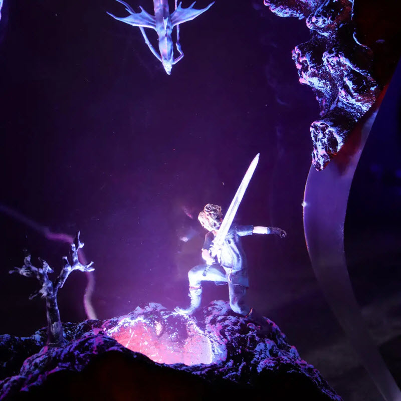 Đèn Epoxy EPX126 tái hiện chân thực cuộc đối đầu kinh điển giữa hoàng tử Noctis và thủy quái Leviathan trong Final Fantasy XV. Với thiết kế hình vòm độc đáo và hiệu ứng LED đa sắc, sản phẩm là điểm nhấn đẳng cấp cho mọi không gian trang trí của fan cứng tựa game này.
